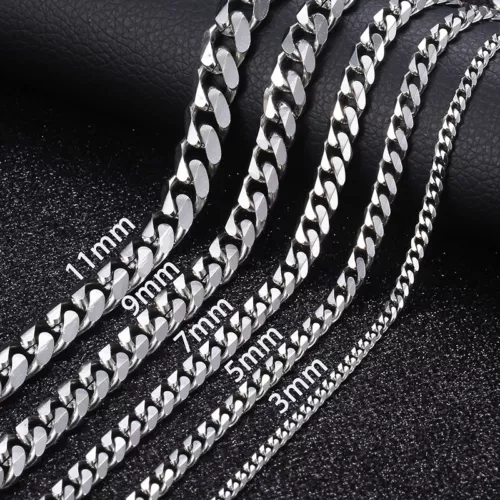 16-36" Stainless Steel Silver Chain Cuban Curb Womens Mens Necklace 3/5/7/9/11mm16-36″ Stainless Steel Silver Chain Cuban Curb Womens Mens Necklace 3/5/7/9/11mm